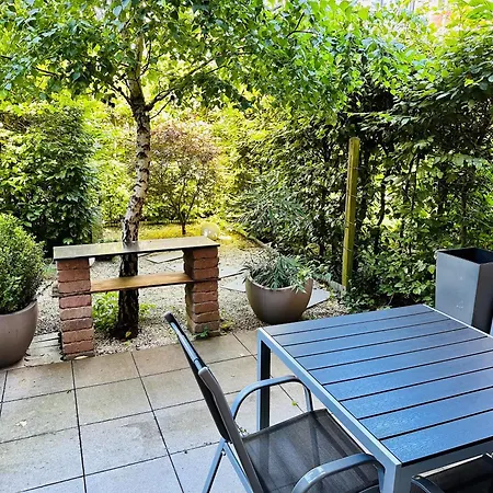 Die 1-Zimmer-Ferienwohnung Fewo Bee61 * Langen Exklusiv Fur 4 Personen *Vollausstattung Mit Kuche* Inklusive Terrasse bietet einen Blick auf den Garten und liegt ungefähr 1 km vom Museum Altes Rathaus entfernt